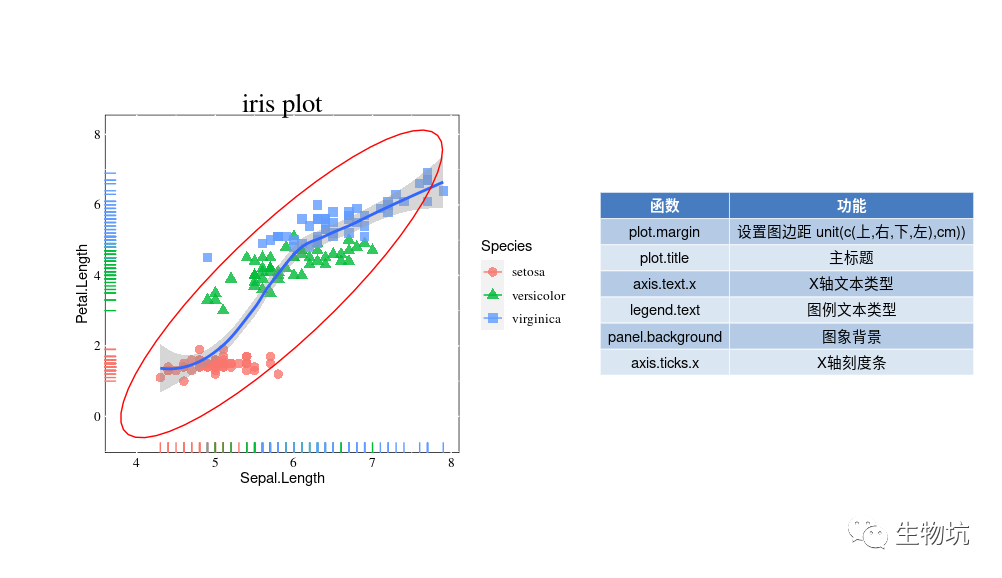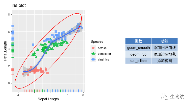 功能= c("添加回归曲线", "添加边际地毯","添加椭圆")) %>%