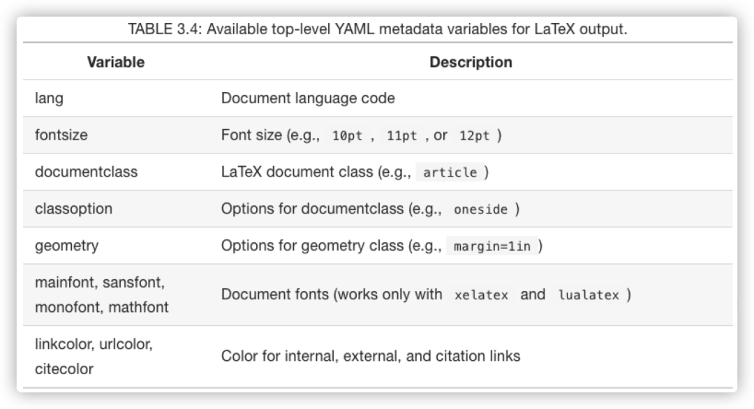 [19]6.1LaTeX软件包清单: https://bookdown.org/yihui/rmarkdown-cookbook/latex-preamble.html#latex-preamble