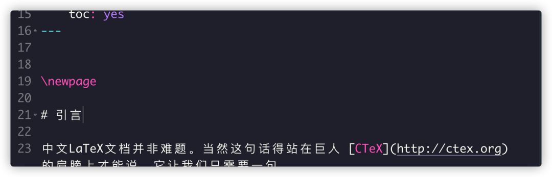 如果想要分页,可以使用\newpage。例如:如果想把目录和正文内容分开,可以在在正文前面加入这个代码