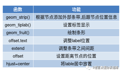 tibble(函数= c("geom_strip", "geom_tiplab()","geom_fruit()",