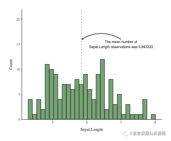 label = "The mean number of\nSepal.Length observations was 5.843333") +