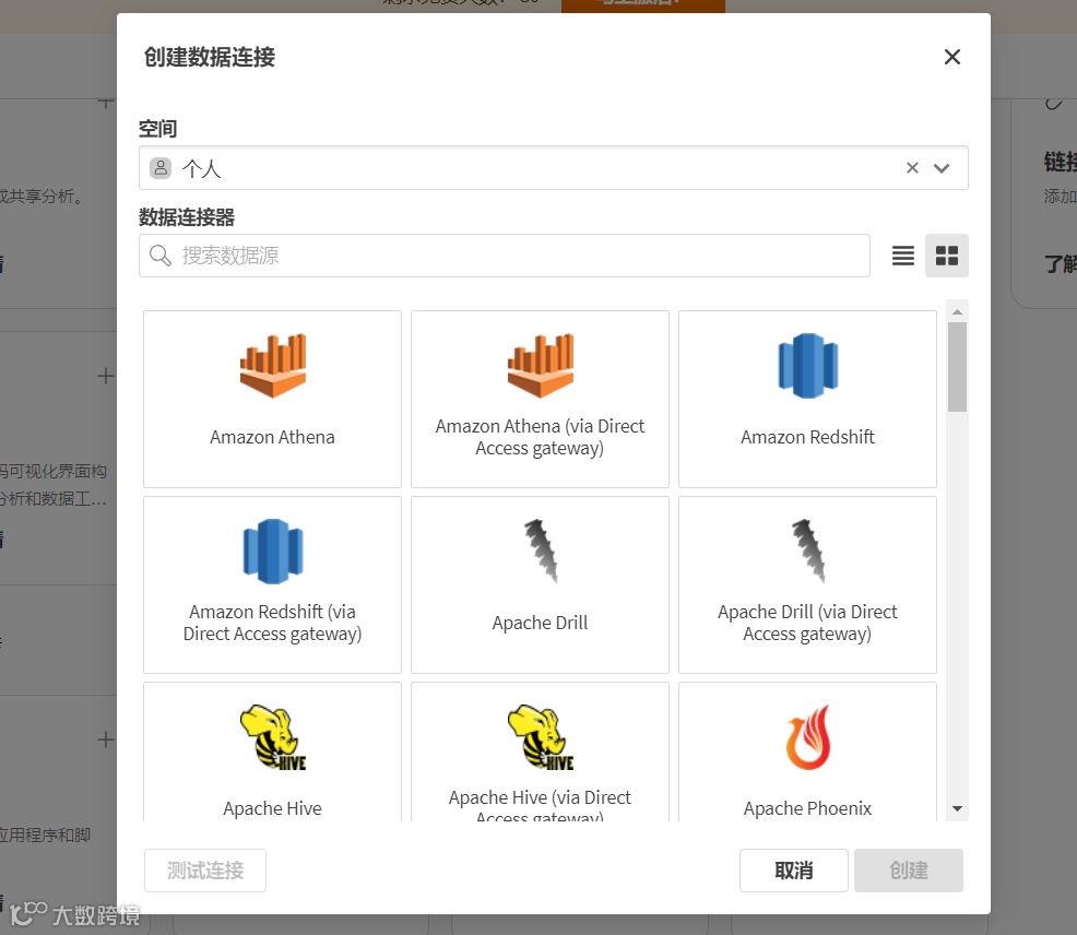 如何接入数据源:点击“创建”→点击“数据集”可选择从本地导入文件或链接到数据库