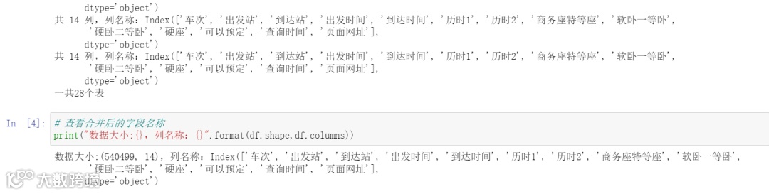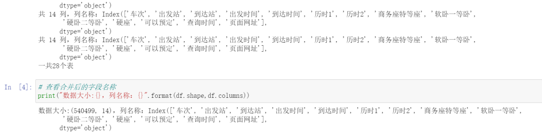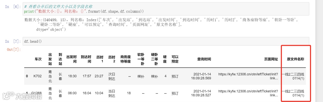 # 查看合并后的文件大小以及字段名称print("数据大小:{},列名称:{}".format(df.shape,df.columns))