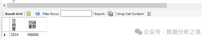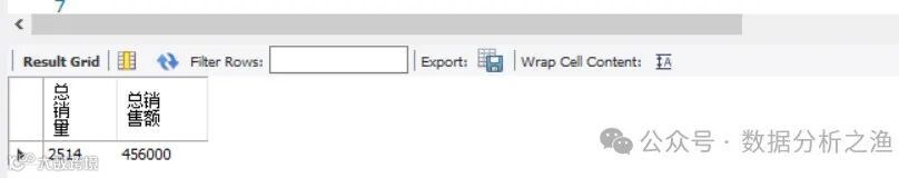 select sum(Quantity) as 累计销量,sum(`Total Amount`)as 累计销售额