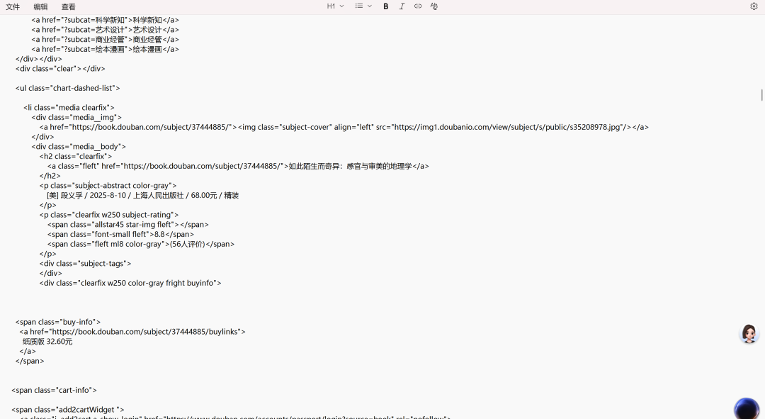clear allcd "C:\Users\ZhangZhenZhen\Desktop\豆瓣图书"copy "https://book.douban.com/latest?subcat=全部&p=1&updated_at=" book1.txt, replace