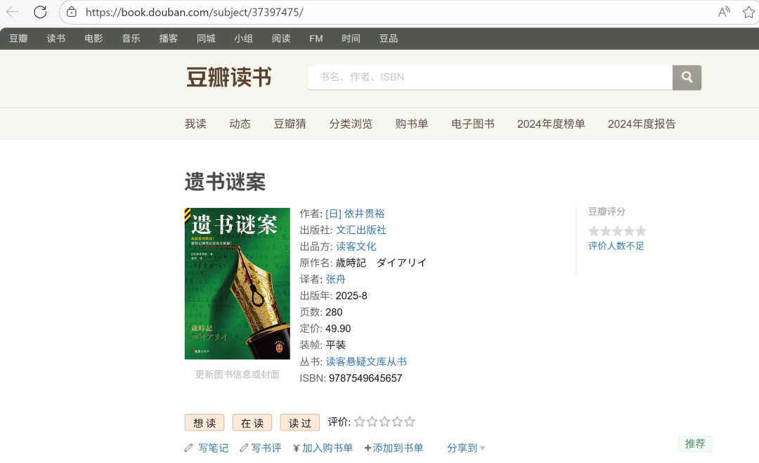 网站:https://book.douban.com/latest?subcat=全部&p=1&updated_at=,将网址复制到浏览器中,页面如下图所示: