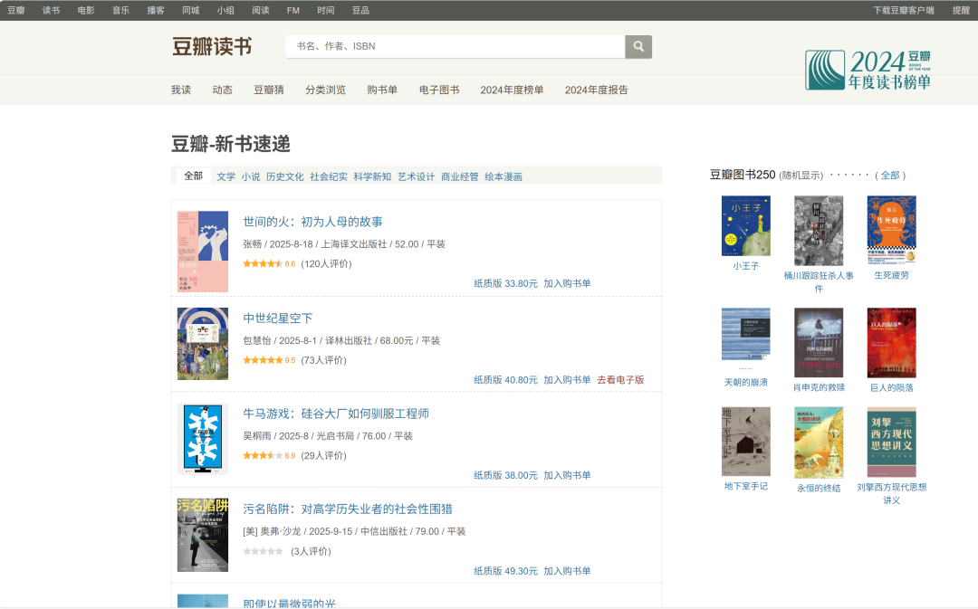 豆瓣网是日常生活和娱乐常用的平台,它既可以提供书籍、电影等,也能翻阅真实的评论、评分。本期推文,我们聚焦豆瓣读书中“新书速递”板块,用stata获取相关图文信息,不仅可以帮助读者获取读书清单,还为读者提供爬虫的教学。