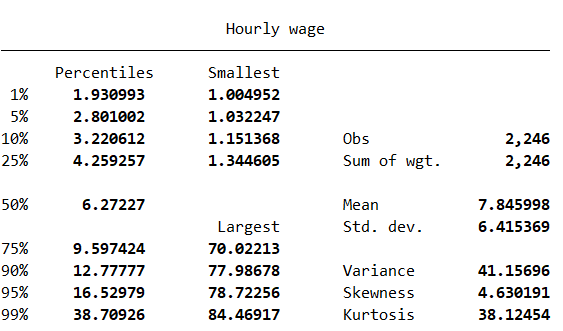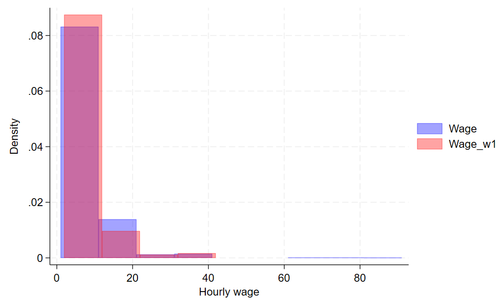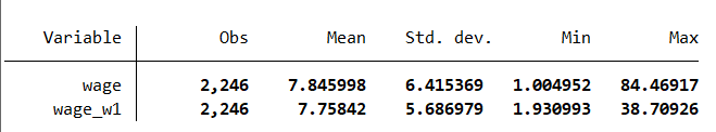 winsor2 wage, cuts(1 99) suffix(_w) // 把头和尾各砍1%