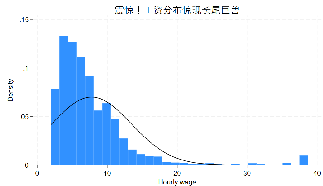 hist wage, title("震惊!工资分布惊现长尾巨兽")