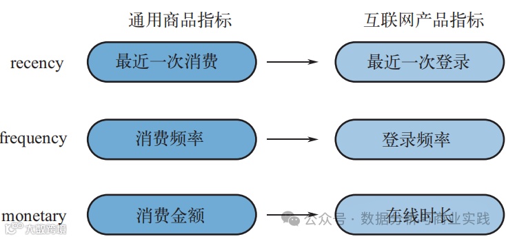 其优势在于灵活性,因为这些指标可以根据不同领域和产品特性进行调整。例如,在互联网产品中,R、F、M可以分别对应最近一次登录、登录频率和在线时长。