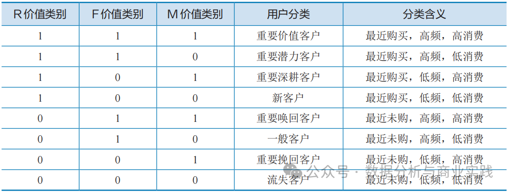 RFM 模型的核心思想是通过三个关键指标——最近一次消费时间(R:recency)、消费频率(F:frequency)和消费金额(M:monetary),对客户进行细分和评估,以确定客户的活跃度、忠诚度和贡献度。