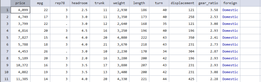cd d:/stata/clear allsysuse auto.dtausesome (1/2 -2/-1) using auto.dta,clear
