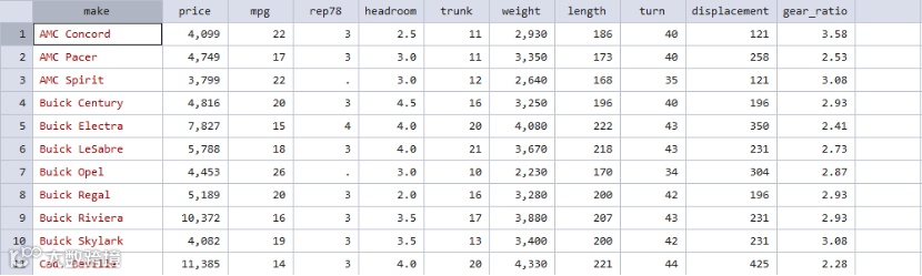 得到结果如下图所示,只保留了原数据中的数值型变量: