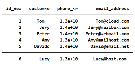 using data中第6个观测值没有被匹配进来,是因为其customer_name、phone_number、email_address,包括唯一标识码id_new和master data的所有观测值都不相似。