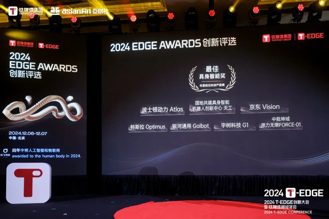 2024年12月7日,北京——在全球科技与商业领域广受瞩目的钛媒体2024 T-EDGE创新大会上,原力无限机器人荣获“年度前沿科技产品-最佳具身智能奖”。