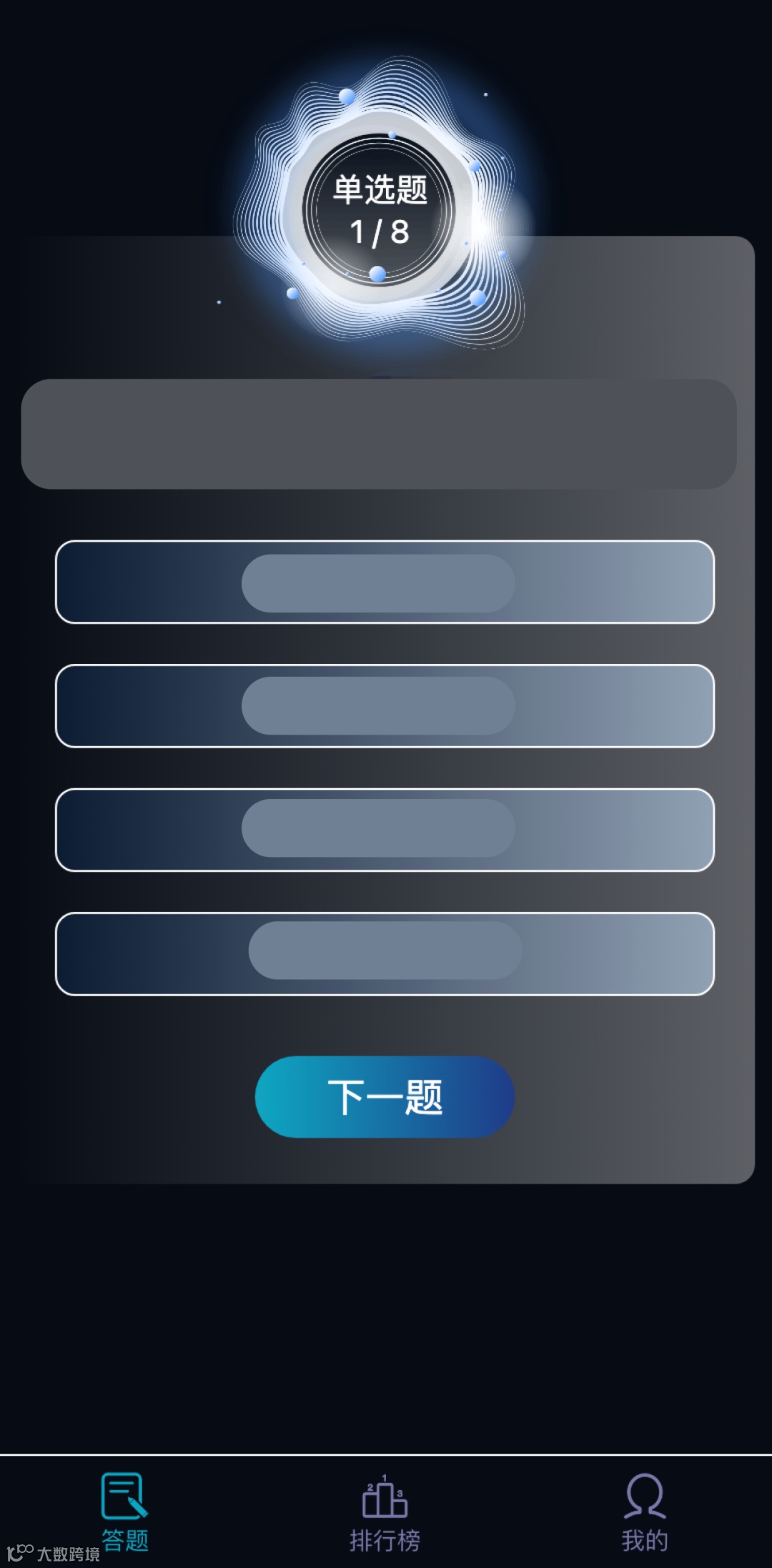 接下来是答题开始后的页面,答题的逻辑就是每次从后台生成一个10道题目的记录返回到前端,前端放进缓存保存即可,即使关闭应用退出后,重新打开也可以立即读取缓存,不需要从头开始答题。
