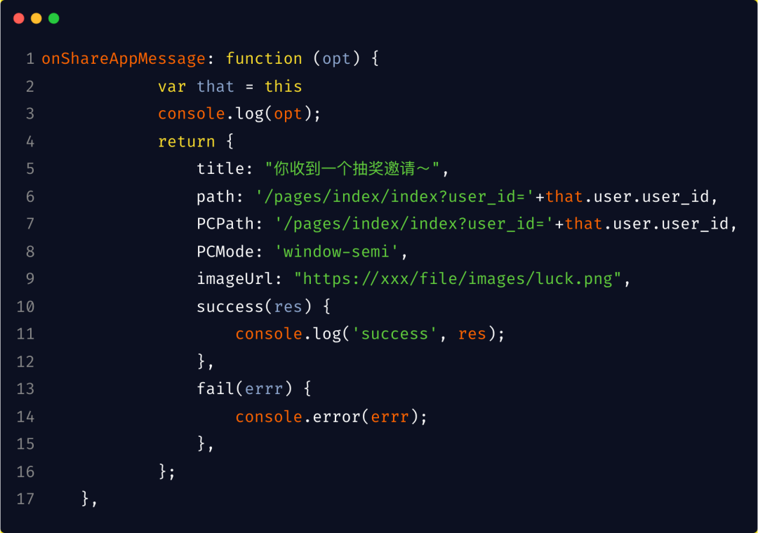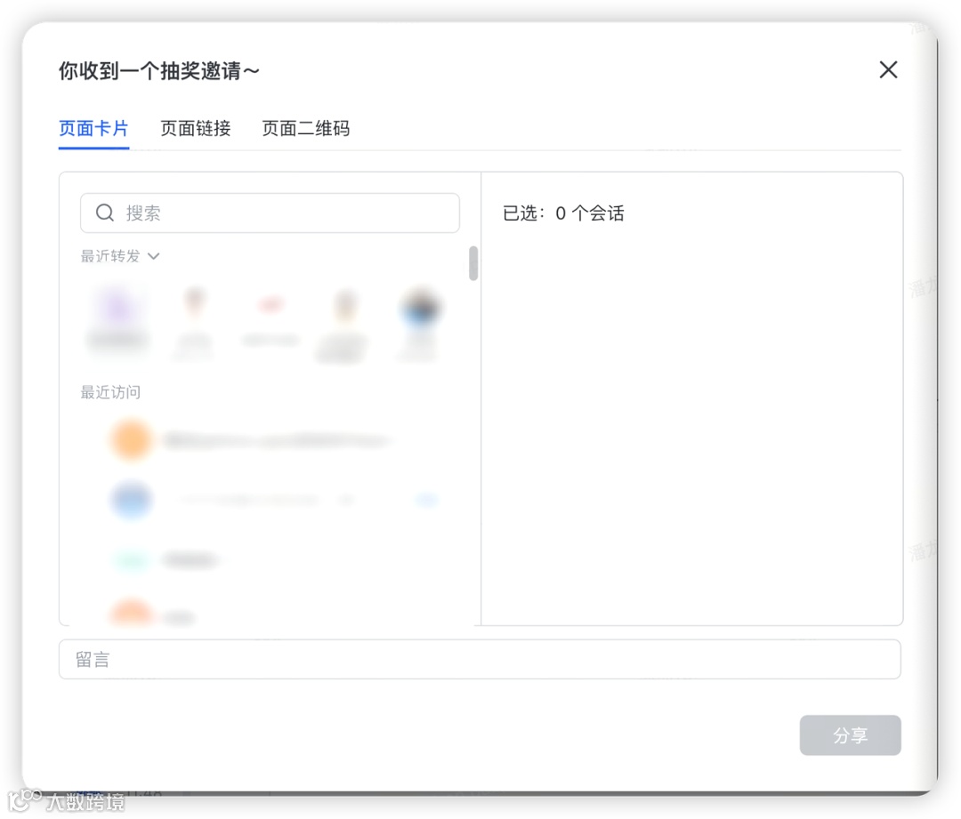 最后是飞书的分享效果,一开始不熟悉飞书的分享功能,最后问客服才了解清楚,如果图片打不开,分享时飞书会没反应,所以要确保分享的图片 url 可以打开。