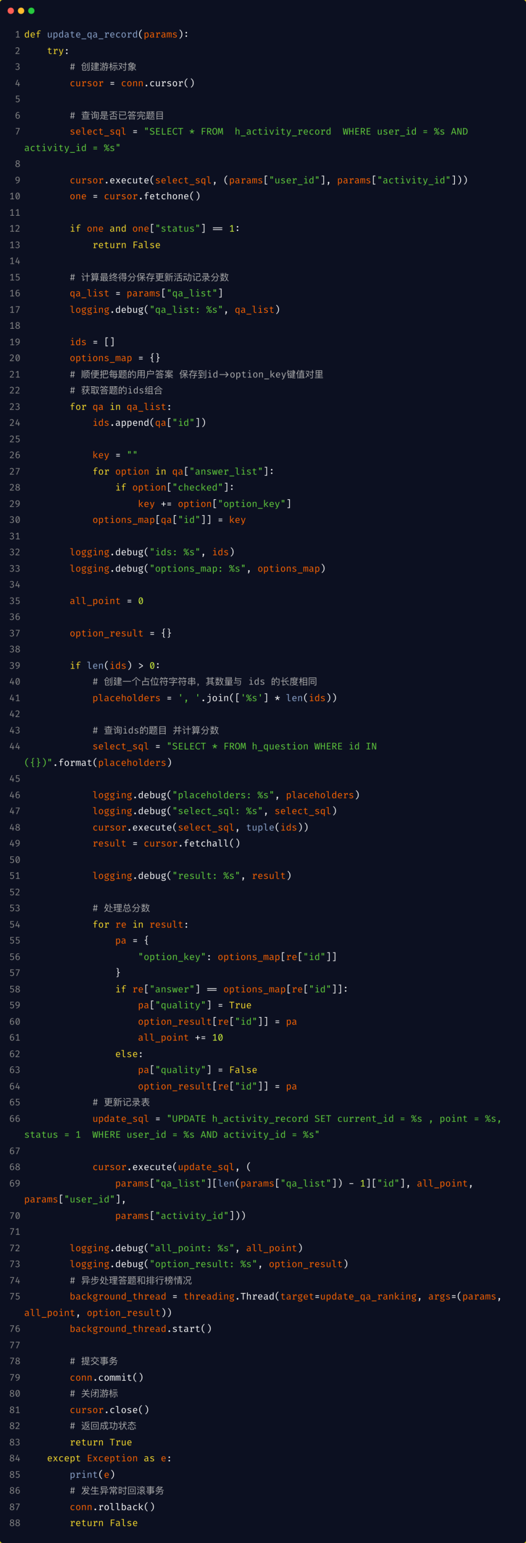 中间有个小插曲,一开始我设计的是每答一道题就修改分数和排行榜记录,但发现这样做速度非常慢,体验很不好,想了想还是决定完成所有题目之后,让用户手动去提交。等用户最终答完题,去提交10道题的答案,再去数据库对比一次保存得分即可,排行榜的数据也可以异步进行处理,这样用户也不需要等待很久。