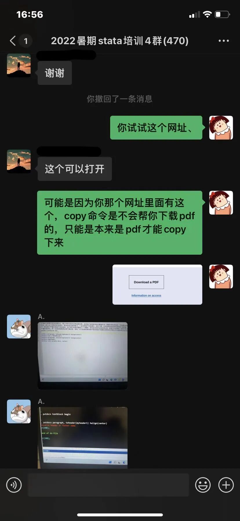 答疑人员首先检查了这位同学的代码,发现代码没有错误,问题应该出现在网址上面。进入该同学想要爬取的网址页面,答疑人员发现,该页面并不是相应的pdf下载链接,而是工作论文信息页面。在该页面上有一个pdf下载入口,点击该入口能够手动下载到pdf文件。对于copy命令来说,它并不能帮助我们下载文件,只能帮助我们爬取网页的源代码。