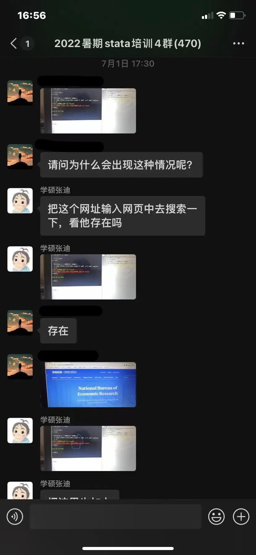 第一位同学想要将NBER网站中工作论文的pdf文件爬取出来,出现爬取失败: