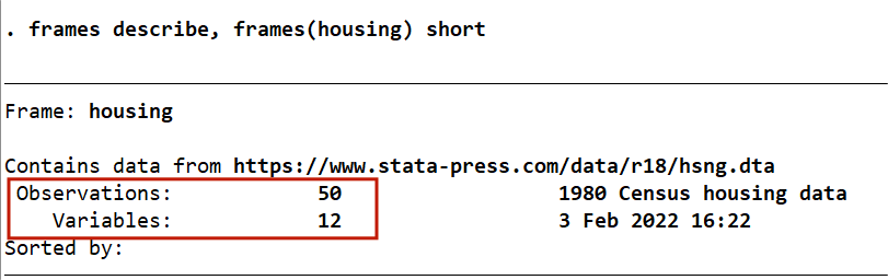 clear framessysuse censusframe rename default censusframe create housingframe change housingwebuse hsngframes describe