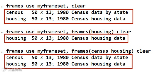 frames use myframeset, clearframes use myframeset, frames(housing) clearframes use myframeset, frames(census housing) clear