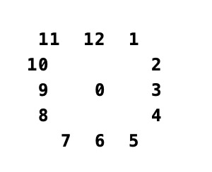 position(#)中,#取[0,12]内的整数。其中0表示“表盘”的中心位置,见下图。