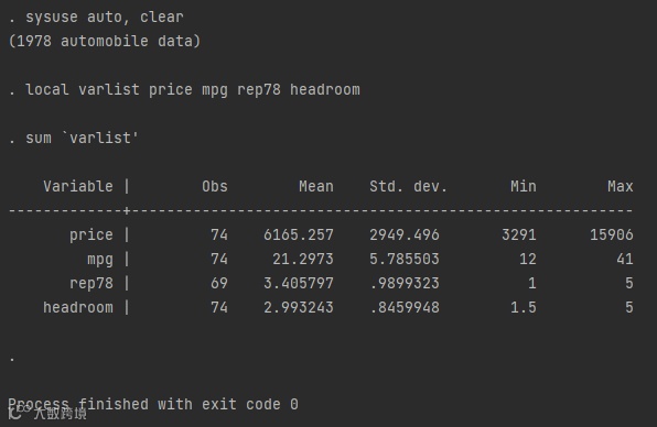 接下来我们就可以在Python中调用Stata了,让我们运行一段简单的代码看看效果如何: