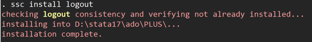 可以看到logout命令直接被下载到 D:\stata17\ado\PLUS\ 文件夹中。只要在安装前设置好安装路径,安装外部命令出现的问题就可以完美解决啦!