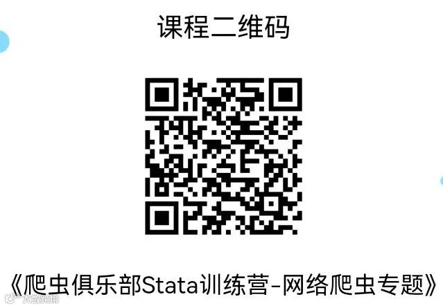 为了感谢大家长久以来的支持和信任,爬虫俱乐部为大家送福利啦!!!Stata&Python特惠课程双双上线腾讯课堂~爬虫俱乐部推出了Python编程培训课程、Stata基础课程、Stata进阶课程、Stata文本分析、正则表达式、网络爬虫、基本字符串课程。报名课程即可加入答疑群,对报名有任何疑问欢迎在公众号后台和腾讯课堂留言哦。我们在这篇推文的最后提供了每门课程的课程二维码,大家有需要的话可以直接扫描二维码查看课程详情并进行购买哦~
