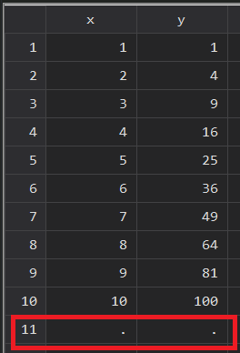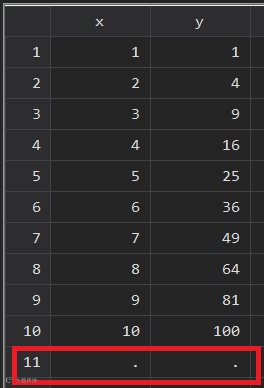 clear allset obs 10 //生成10个观测值gen x = _n //创建变量x (x=1, 2 ,3·········10)gen y = x^2 //创建变量y (y=1,4,9……………100)moreobs 1 //在数据集末尾添加一个观测值,相当于moreobs