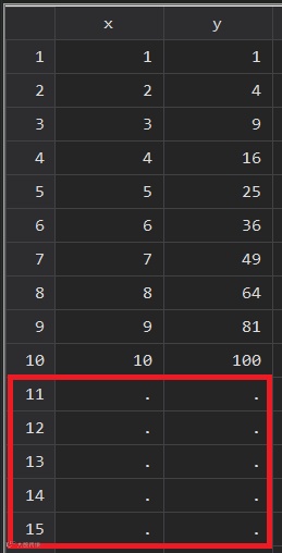 clear allset obs 10 //生成10个观测值gen x = _n //创建变量x (x=1, 2 ,3·········10)gen y = x^2 //创建变量y (y=1,4,9……………100)set obs 15