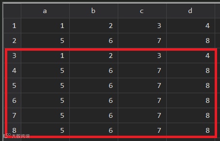 expand b就表示根据变量b的值对数据进行扩充,这里变量b第一、第二行观测值分别为2和6,因此expand b就将当前数据集替换为有两行第一行观测值和六行第二行观测值,即添加了原始数据第一行观测值的1倍和第二行观测值的5倍。