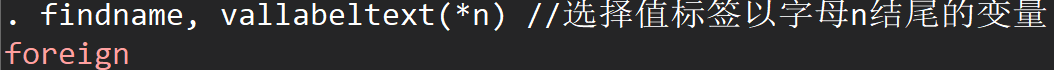 findname, vallabeltext(*n) //选择值标签以字母n结尾的变量