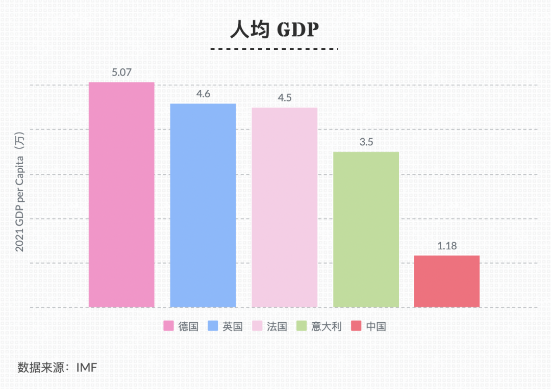 从英国人民生活水平来看,英国属于高收入国家。根据 IMF 2021年数据显示,该国人均 GDP 以4.6万美元成为德国、英国、法国和意大利这欧洲四大经济体中第二高的国家,仅次德国的5.07万美元。然而,近10年来,英国国民之间的贫富差距却越来越大。据英国国家统计局的数据显示,从2011财年到2020财年,占据1%人口富豪阶层的收入占比从7%增加到8.3%。