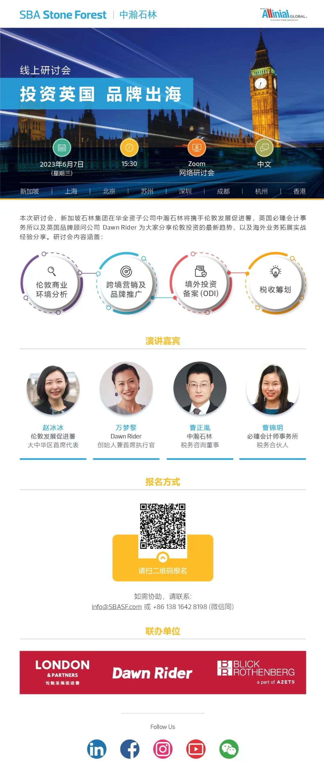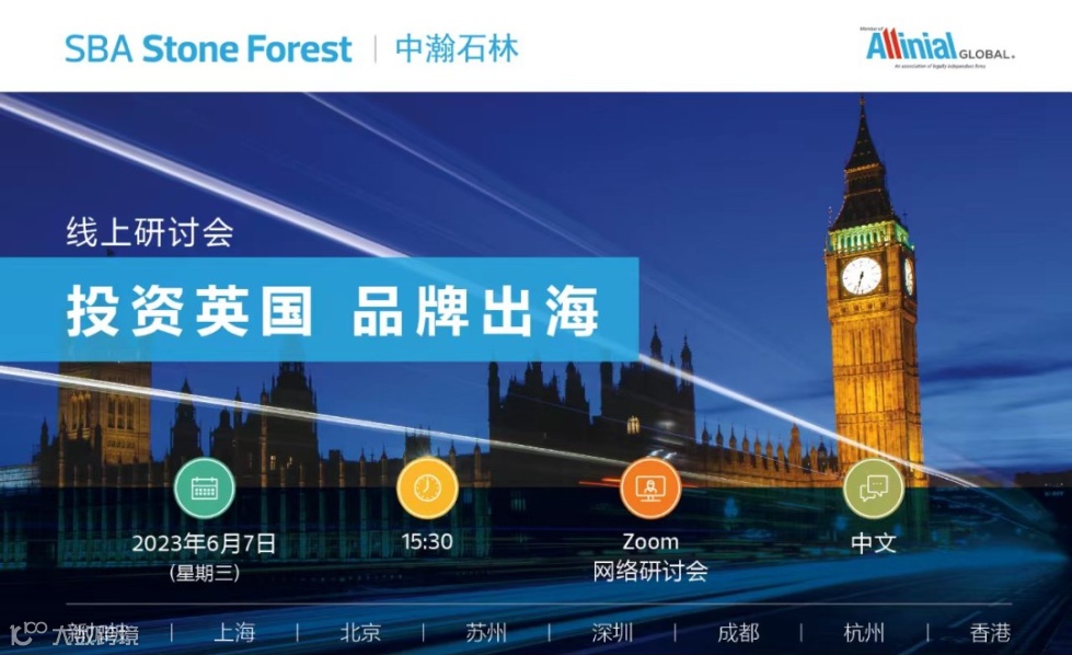 6月7日下午3点30分,新加坡石林集团在华全资子公司中瀚石林将携手伦敦发展促进署,英国必臻会计事务所以及英国品牌顾问公司Dawn Rider联合主办“投资英国 品牌出海” 线上研讨会。