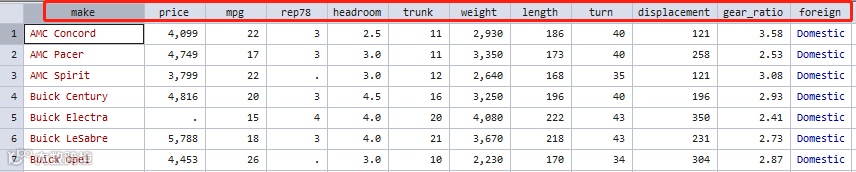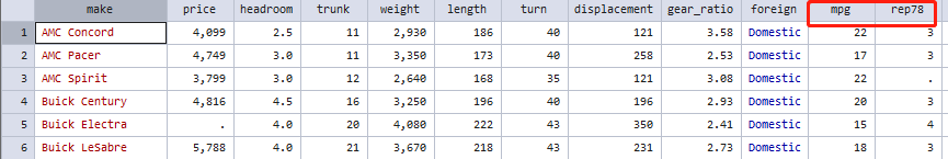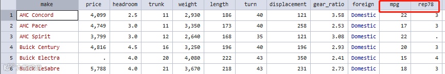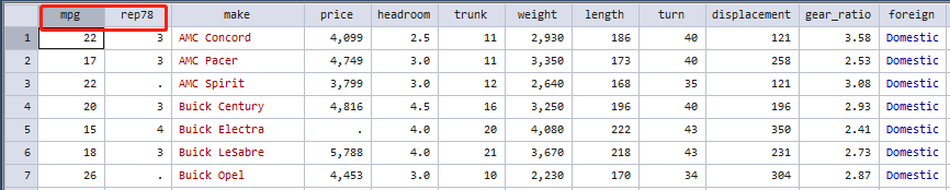接下来,我们想把mpg、rep78放在变量列表的最前面,代码如下: