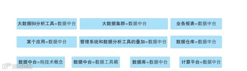 数据分析产品、分析工具、仓库工具等集合在一起的工具箱并不是数据中台。因为每款工具的功能既相互交叉,又各自独立,工具之间无法协同一致。工具箱的架构只是数据中台建设的部分环节,只能发挥各 个工具的效果,作为简单的决策辅助和报表参考。而数据中台建设初期就要考虑到各个环节的无缝打通,确保后续的数据维护和数据质量,因为一旦某个环节的数据产生变化,其他环节的数据应及时自动修正,否则会导致用户决策出错,造成巨大的损失和影响。一些国内大型互联网公司从国外购买数据技术产品,但在实际运用过程中并没有达到工具集合的效果,即使某一个环节应用 效果良好,最终的数据结果也会出错,原因在于生产链条无法协调统一,数据维护门槛较高。针对以上问题,传统的解决方案是做各种各样的中间表,但这样又会产生其他的问题。建立和维护中间表需要持续投入时间成本和资源,且人工维护难度大;当企业业务达到一定规模,需要改变中间表时,或许已经发生了人员变动,中间表无法修改, 数据无法回溯。阿里巴巴作为数据中台概念的提出者,针对以上问题也做了很多工作,比如开发数据血缘分析系统,梳理数据的血缘关系, 维护数据应用的正确性。企业为了维护数据的一致性,需要开发更多复杂的应用产品,保证数据的质量。可见,数据中台并不是数据工具箱。
