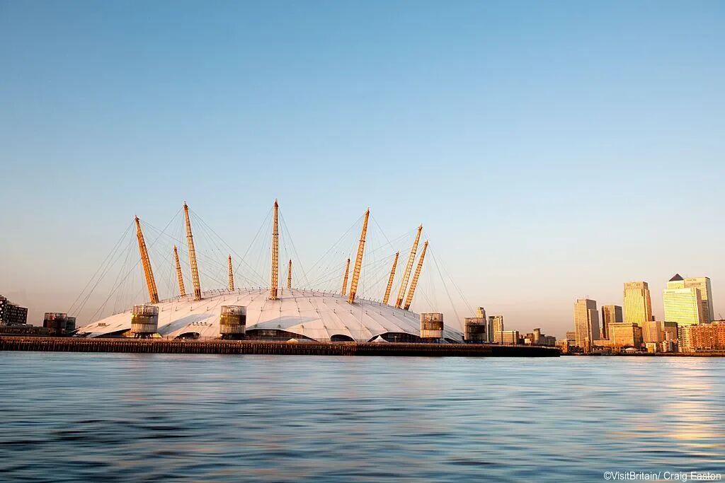 独特的圆顶形建筑最初是为千禧庆典的展览而建, 2012年伦敦奥运会的体操比赛也在其中举办,而现在它还变身成为了巨星演唱的著名场地。O2 Arena不仅见证了Spice Girls的回归,连邦乔维(Bon Jovi),蕾哈娜(Rihanna),碧昂斯(Beyoncé),泰克(Take That)和泰勒·斯威夫特(Taylor Swift)也曾在这巨蛋内闪耀。