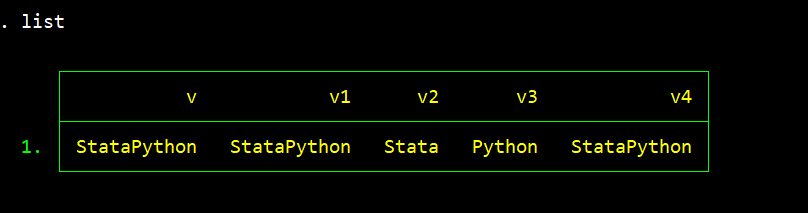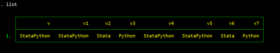 gen v4=ustrregexs(0) if ustrregexm(v,"(Stata)(Python)") //v4和v1提取结果相同,说明子表达式的添加不影响匹配结果