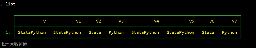 gen v2=ustrregexs(1) if ustrregexm(v,"(Stata)(Python)") //1代表第1个括号内的子表达式对应的子字符串