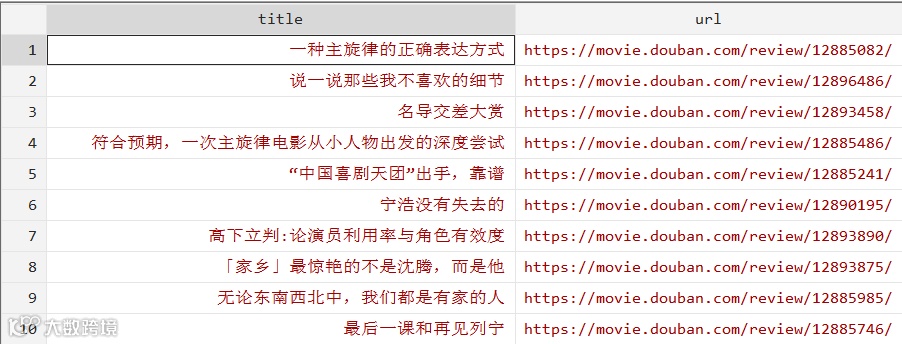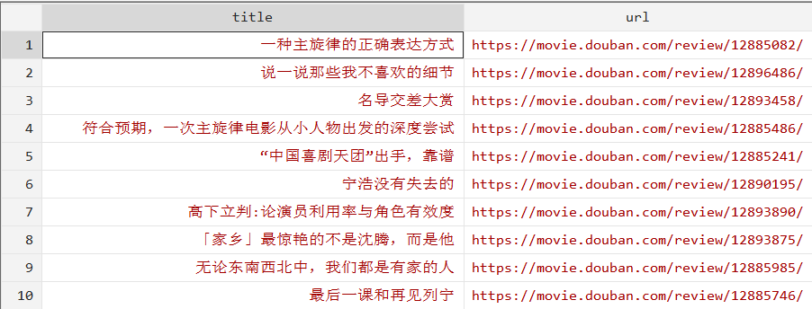 如上图所示,就得到了第一页所有影评的标题和链接。