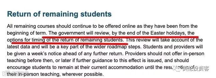 英国政府将于复活节假期结束前开始评估剩余学生的返校时间,并提前一周通知大学最终的开学时间。