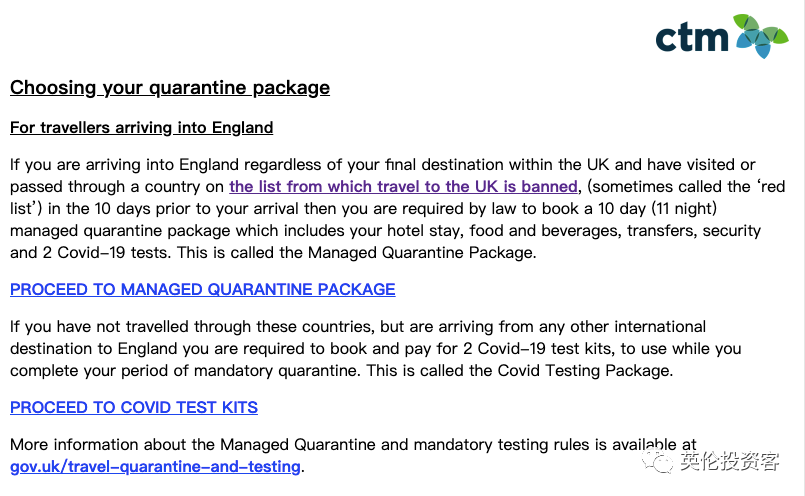 旅行测试包预定网址:https://quarantinehotelbookings.ctmportal.co.uk/