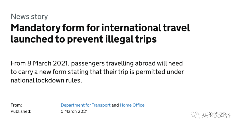 这份离境表格上需写清楚自己为何要在封锁期间进行国际旅行,目前英国政府只允许必要的出国离境,不允许任何非必要的旅行,否则算违法,并要接受罚款。