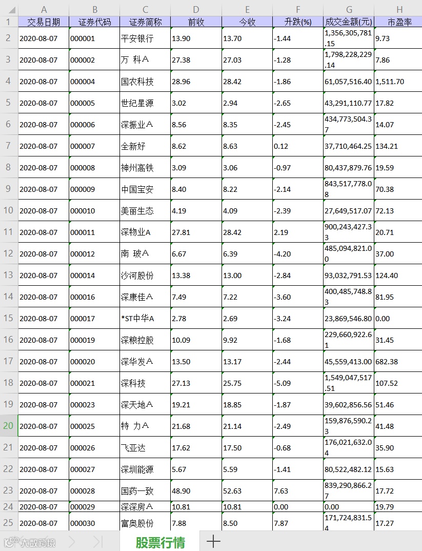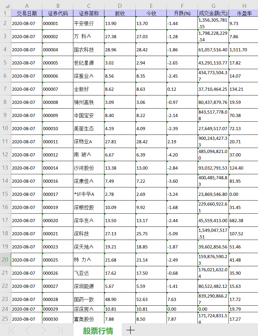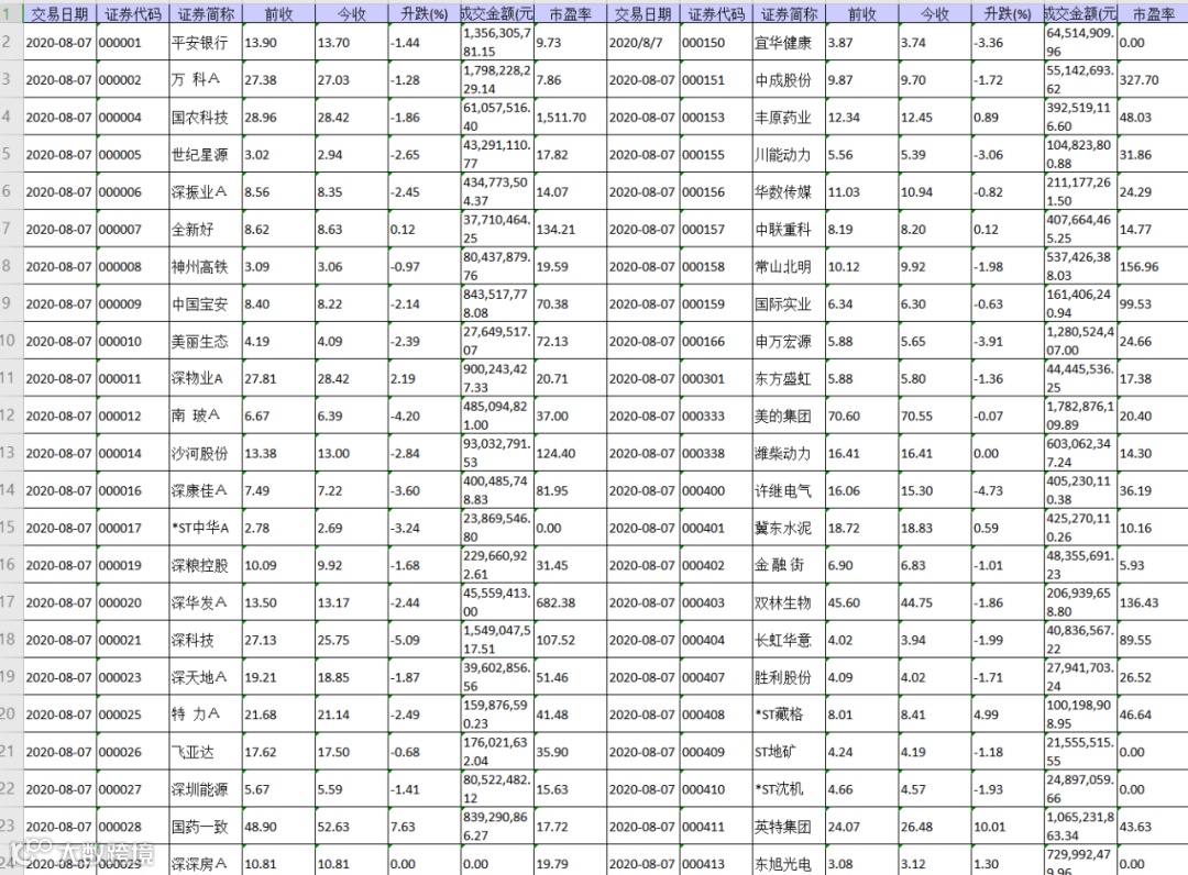 rename (x1-x8) (交易日期 证券代码 证券简称 前收 今收 升跌 成交金额 市盈率)