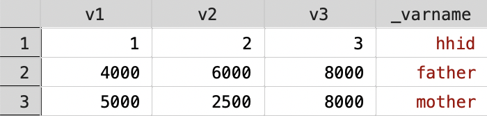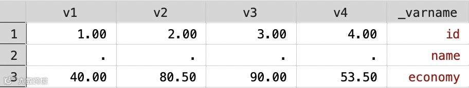 ④varname:在转置后的数据中保留原始数据的变量名称;