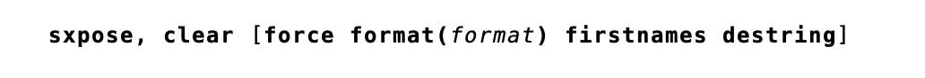③format(%fmt) :按照设定的数字显示格式应用于转置数据中;
