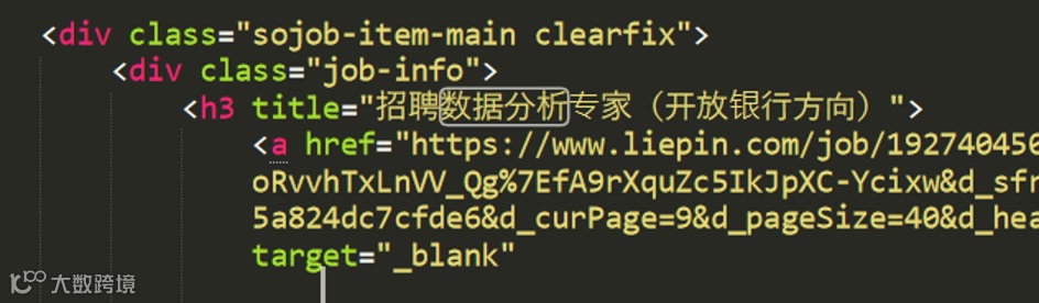 本文中,小编将以求职网站“猎聘网”(https://www.liepin.com/zhaopin/?d_sfrom=search_fp_nvbar&init=1)发布的职业招聘信息为例,爬取该网页上有关“数据分析”职业(后简称为“分析师”)的薪资信息(职位、公司、薪资待遇、地区、学历要求、经验要求)。