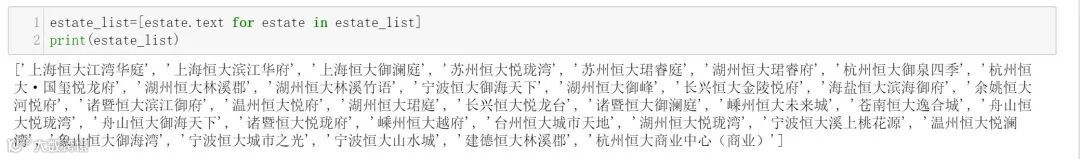 通过上述操作,便可将华东分公司的楼盘信息保存到estate_list当中,结果如下: